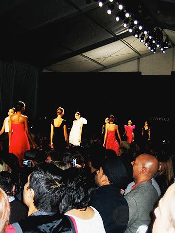 The Tadashi Shoji show was wonderful. It was nice to actually have been able to attend a runway show at the Bryant Park tents. The friend I went with decided it would be a good idea to wear a fur coat, thus resulting in us getting ambushed by the paparazzi outside and whilst waiting in the standing room only line. People kept asking for pictures, and on some level it was a nice self-esteem boost. Who wouldn't think so? Though it's kind of ironic considering if we were by any chance people of importance, we sure as hell wouldn't be standing in line waiting for the show. I don't think I saw any celebrity faces on the front row, but I can't be too sure. We did, however, manage to steal some of the pink apple decor (for souvenirs of course) and see Ray J. Epic? Not really, but it was a good experience.